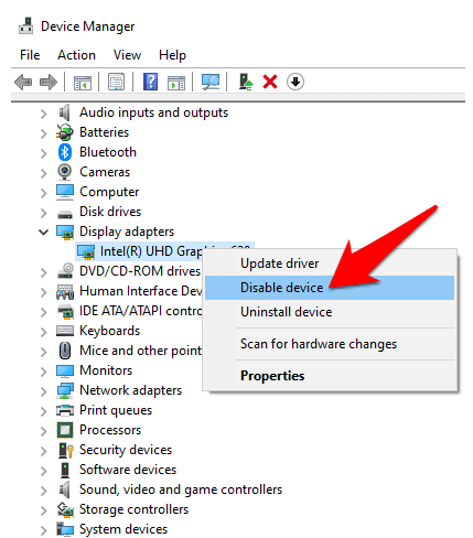 목록에서 디스플레이 드라이버를 마우스 오른쪽 버튼으로 클릭하고 선택하세요.