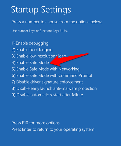 4 키보드를 눌러 Windows 10을 안전 모드로 시작하세요.
