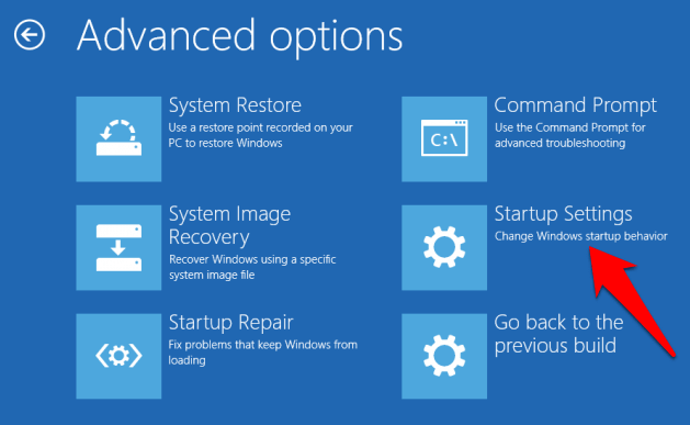 다음으로 메뉴를 클릭하세요. Advnaced 시작하려면 옵션을 클릭하세요. 문제 해결.